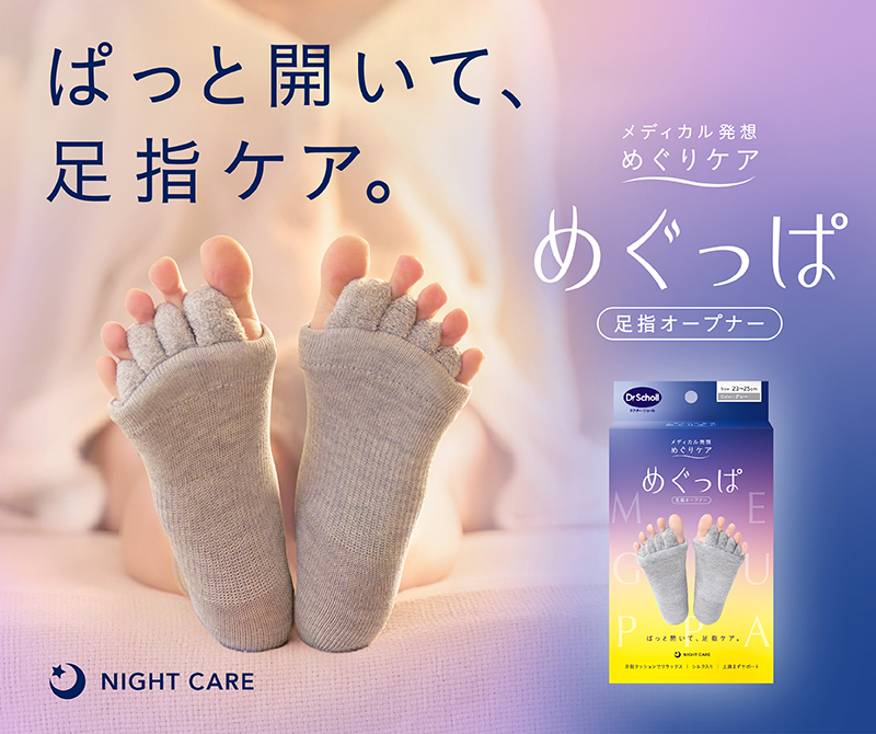 やわらかなジェルクッションを外反母趾の指の間にはさむことで、指と指の圧迫による痛みを緩和します。
