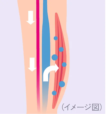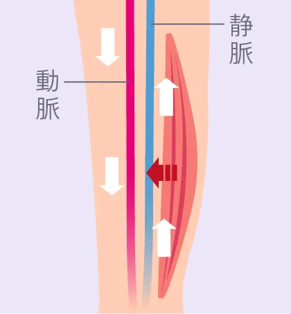 ふくらはぎの筋肉が収縮することで、リンパ液や血液を心臓へ戻すためのポンプの働きをします。